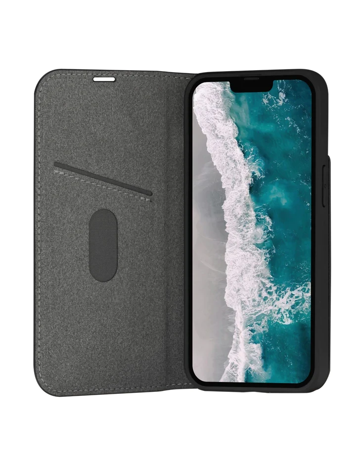 Oslo Pro ist eine stoßfeste Folio-Tasche aus recyceltem Kunststoff mit einer Oberfläche, die aussieht und sich anfühlt wie Leder. Dank der faltbaren Rückseite können Sie Videos freihändig im Querformat ansehen.